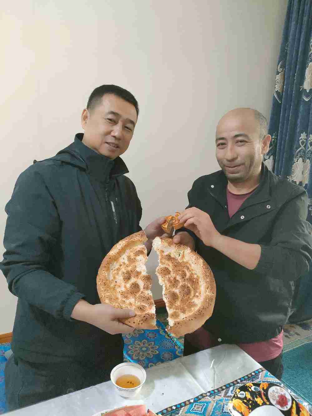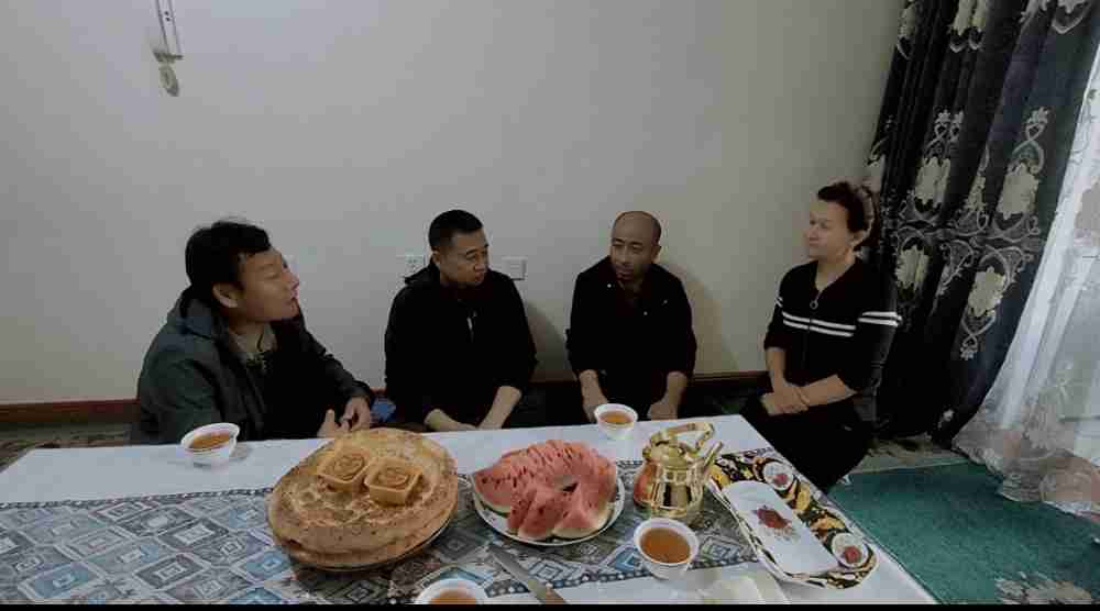 走进吐尔逊师傅家中,小小的客厅顿时被欢声笑语填满,显得格外温馨。车队班子与吐尔逊及其家人围坐一处,如同久别重逢的亲人。桌上摆满了香甜的月饼和时令水果,大家一边品尝着象征团圆的月饼,一边亲切地拉着家常。班子成员们关切地询问吐尔逊家人的身体情况、孩子的学业以及生活中是否存在任何困难,细致入微的关心,让吐尔逊一家倍感温暖。