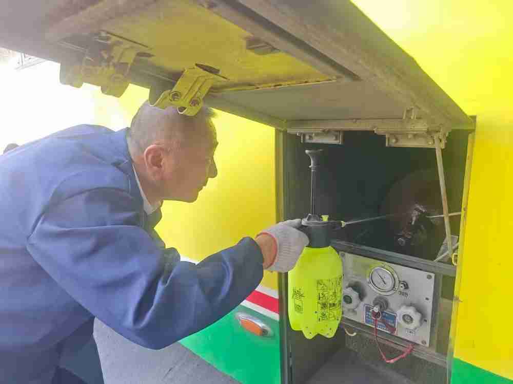 “徐德柱你的车右后钢板小卡子松了,下班后回头宫车间报修,早上接车时仔细检查报修项目是否修好并及时给我反馈。”“王海洋你的车刹车总泵漏气存在安全隐患,把修理工小赵叫来,现在就修理,不能带病运营”……检查过程中技术队长刘新钢严格按照安全技术标准,不放过任何一个环节,不漏掉任何一处细节,对检查出的问题认真做好登记,对驾驶员详细安排和叮嘱报修事项。在车队班子共同努力下,从车辆的动力系统、制动性能、转向系统、轮胎磨损情况,到灯光、雨刮器、后视镜等安全设施;从车厢内的灭火器、安全锤等消防设备是否齐全有效,再到车门开关灵活可靠、车载监控运行是否正常;乃至天燃气路和电器电路等可能存在安全隐患的部位都逐一进行了排查。
