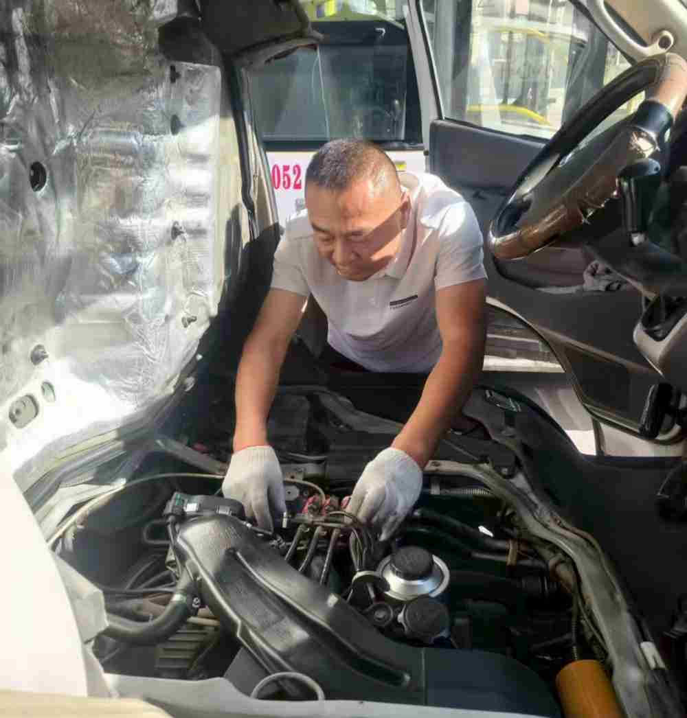10月7日,经营四部驾驶员热合曼的求助电话在一车间紧急响起,“车在雅玛里克山青峰路亏电熄火,车上还有乘客!”修理工马赛即刻响应,携专业工具火速赶赴现场。抵达故障点后,马赛用电瓶检测仪对车辆电瓶进行检查,发现该车辆电瓶电量过低,需要外接电源进行辅助启动车辆。车辆启动着后,马赛微笑着告知驾驶员:“车辆可以安全上线运行了”。热合曼紧锁的眉头舒展,连声致谢的背后,是公交人高效专业的救援实力。