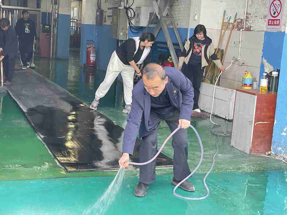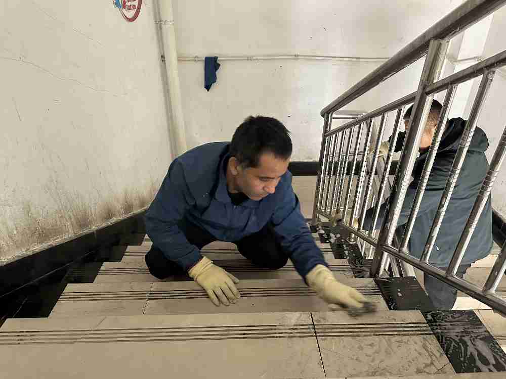随着劳动启动信号的发出,各部门干部职工迅速携带清洁工具奔赴“战场”,一场热闹非凡的“清洁攻坚战”就此展开。手持钢丝球、抹布的同事化身“地面清道夫”,弯腰弓背穿梭在走廊楼梯间里,地砖缝隙里的油污碎渣、墙角线旁的积尘都不放过,钢丝球划过地面的“唰唰”声,如同奏响劳动的序曲;手握抹布的同事则变身“玻璃美容师”,沾湿、拧干、擦拭,动作一气呵成,原本蒙着薄尘的门窗玻璃,在反复擦拭下逐渐变得通透光亮,阳光透过玻璃洒进室内,映照出一张张专注的脸庞;负责整理公共区域的同事,耐心地将散落的文件资料分类归位,把歪斜的办公用品摆放整齐,连会议室桌椅的间距都反复调整,力求做到“横平竖直、井然有序”;而针对卫生死角的“攻坚小组”,更是拿出了“啃硬骨头”的劲头——卫生间墙角的霉斑,用专用清洁剂反复涂抹擦拭;楼梯间台阶边缘的顽固污渍,大家蹲在地上用钢丝球一点点清理,汗水顺着脸颊滑落,却没人停下手中的动作,只想着“再坚持一会儿,就能把这里彻底清理干净”。大家的互帮互助中变得高效又轻松,劳动的疲惫被团队协作的快乐所取代,整个办公楼里回荡着欢声笑语,洋溢着“心往一处想,劲往一处使”的浓厚氛围。