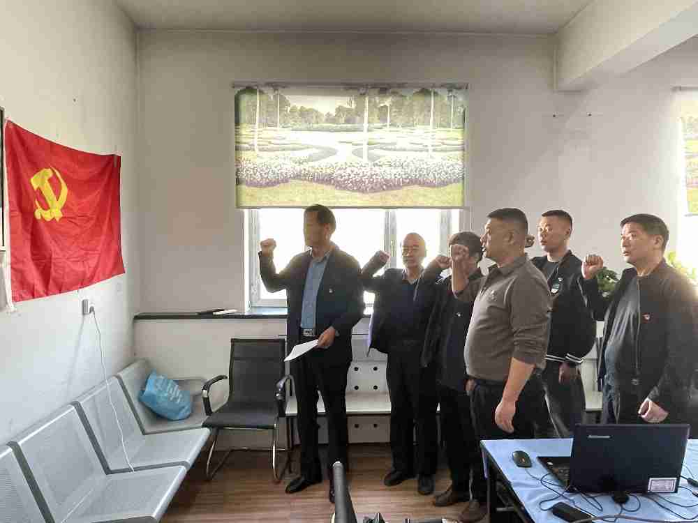 当日为砥砺党员初心使命、强化身份认同,党支部组织全体党员在庄严肃穆的会议室开展“重温入党誓词,坚守初心使命”主题党日活动。