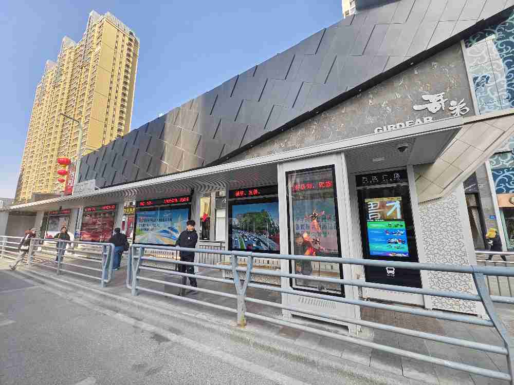 该智慧候车亭总长近26米,配置4个广告牌,2个电子站牌显示屏,4条LED条屏,采用简约时尚的外观设计,与万达周边建筑风格融为一体,成为街头亮眼景观。相较于常规站台,其在功能与体验上实现多重升级:智能监控系统实现24小时全天候、无死角的安全监控,该系统不仅能够实时捕捉候车区域的人员动态,还可对异常行为进行自动识别和预警,为乘客的人身安全提供坚实保障;无线充电区域采用最新快充技术,支持多种主流电子设备的无线充电,市民在候车过程中,只需将设备放置在指定区域,即可轻松实现快速充电,满足各类电子设备的充电需求;针对乌鲁木齐冬季寒冷的气候特点,候车亭创新性地引入了座椅加热功能,通过智能温控系统,可根据环境温度自动调节座椅温度,让市民在严寒中也能感受到温暖与舒适。信息展示方面,候车亭配备了高清电子信息牌和裸眼3D显示屏,实时更新公交到站时间、线路变更等实用信息,同时播放天气预报、城市宣传等内容;LED文字滚动屏则可根据需要灵活发布各类紧急通知和公共服务信息,确保重要资讯的及时传达。在环境营造上,通过镭射灯、智能调光灯带和多层次照明系统的有机组合,打造出既富有科技感又不失温馨的候车空间。夜幕降临时,流光溢彩的灯光效果更使其成为城市夜景中一道靓丽的风景线。