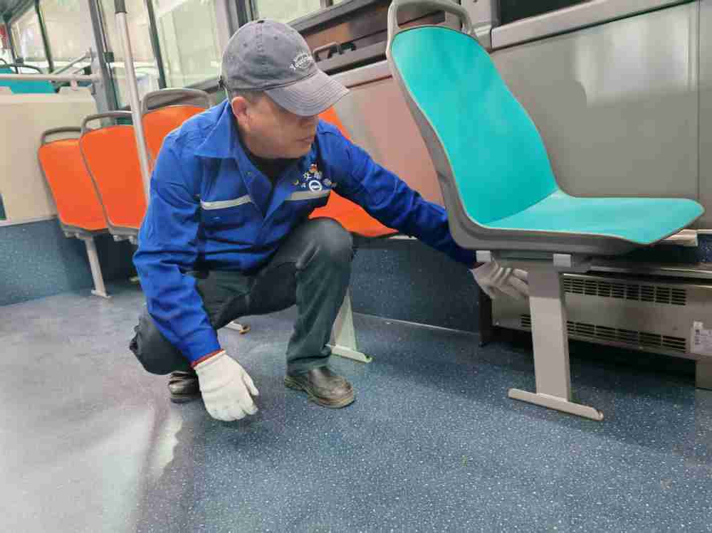 检查期间,技术质量管理科精准聚焦关键环节,针对恶劣天气下的视线与采暖需求,逐车测试灯光照明的亮度与覆盖范围,检修雨刮器的刮刷效果及喷水系统压力,确保雨天视野清晰、车厢暖气排风口供热稳定。同时,深入车辆底部地沟,对底盘悬挂、转向系统、传动部件、制动管路等核心组件进行“拆解式”维护,清理锈蚀、紧固螺栓,排查潜在故障隐患,从根源上保障湿滑路况下车辆的操控性与安全性。23车队技术队长齐春还细致巡检车厢座椅稳固性、消防器材有效性等细节,以“锱铢必较”的态度堵死每一处安全漏洞。