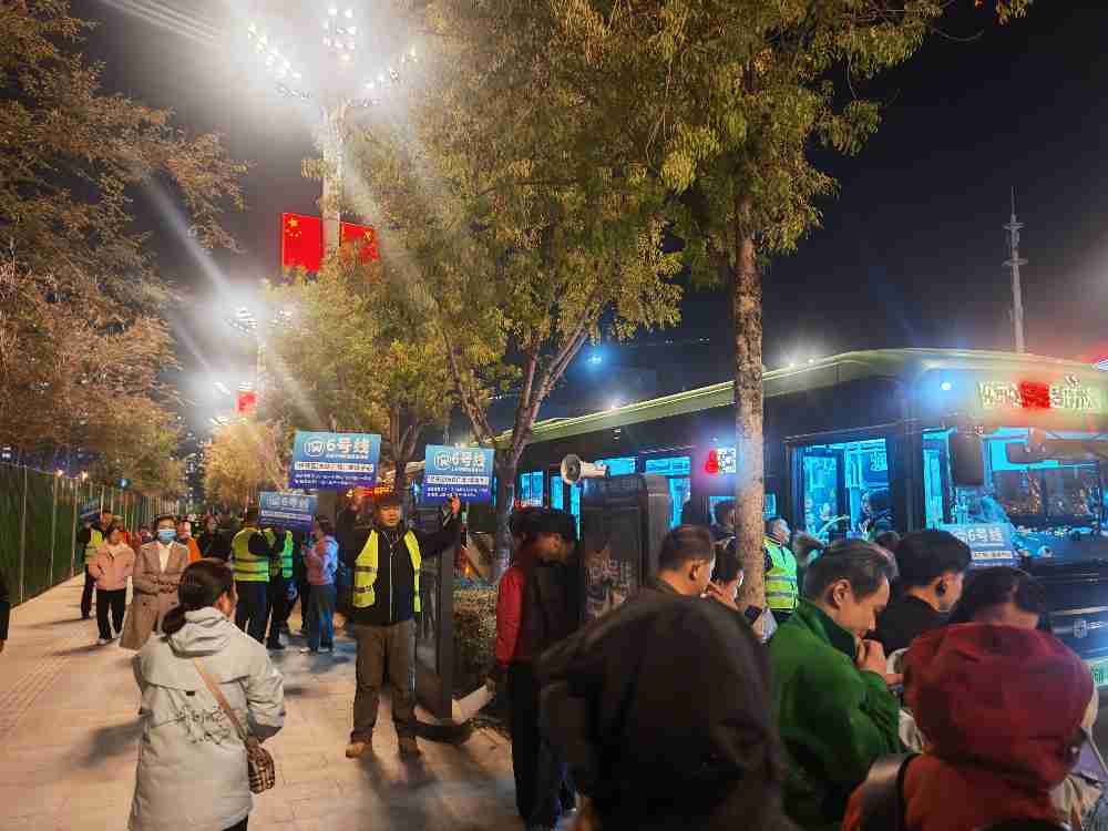 演出期间,经营二部实行“现场指挥+后方调度”联动机制。管理干部提前3小时到岗,在各站点举牌引导、解答问询;调度人员实时监测客流变化,对“远端接驳+近端摆渡”车流灵活调整发班频次,高峰时段实现“客满即走”。针对散场瞬时大客流,启用应急运力储备,现场所有执勤人员立刻组织构建高效疏散通道,确保刀迷快速离场。此外,二部还为驾驶员做好后勤保障,妥善安排餐食与休息,全力保障服务持续性。