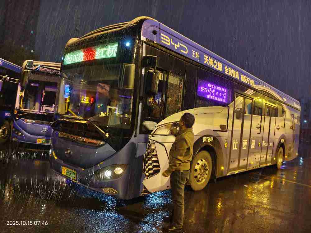 早晚高峰,站点人流如织。每当看到抱小孩、提重物的乘客匆匆赶来,驾驶员们总会默契地多等片刻。“多等一会儿,大家就能少淋点雨,我们心里也更踏实。”44路驾驶员张鹏如是说。