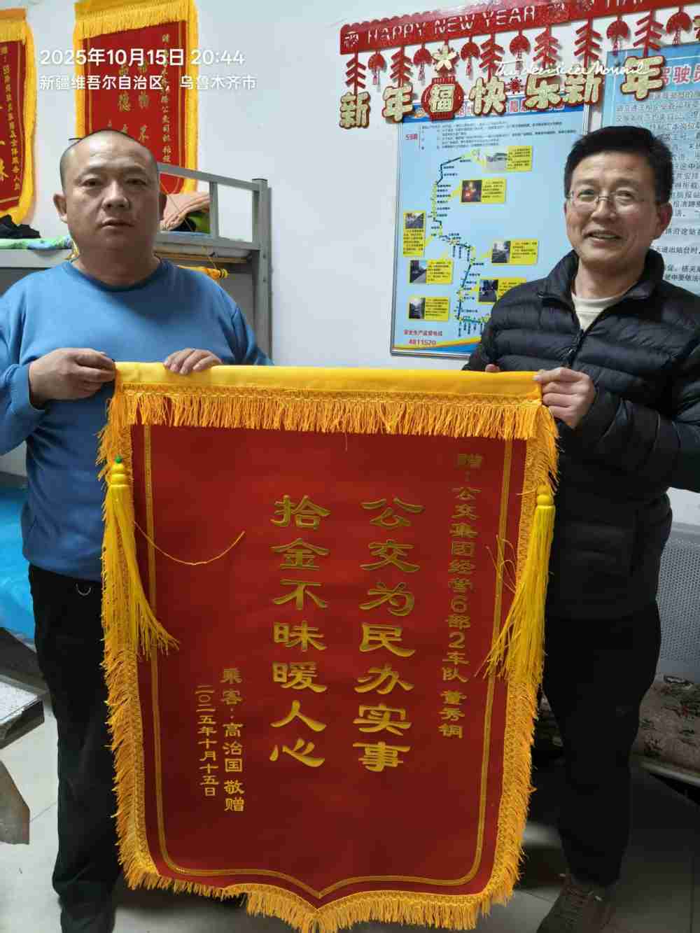 2025年10月10日下午15时,乌鲁木齐市公共交通集团有限公司经营一部“金雪莲”优质服务团队907路0170号驾驶员卢国庆师傅,用一次及时的坚守与担当,践行“拾金不昧守初心 优质服务显本色”的承诺,让文明暖流在城市街巷间传递。