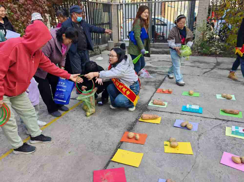 振安街北社区“石榴杯邻里节”套圈活动现场,土豆、胡萝卜等农产品被摆放在彩色垫纸上,化作各族老人眼中的“欢乐靶标”。见参赛的奶奶握着彩圈有些犹豫,身旁的突击队队员盛洁立刻弯下腰,笑着鼓励:“奶奶,您别紧张,瞄准您看中的那根胡萝卜,套圈肯定也难不倒您!”奶奶被逗得笑出声,深吸一口气将圈扔出,恰好套中目标,周围的老人们纷纷拍手叫好:“厉害,厉害!”转向腼腆的张爷爷,盛洁又递过彩圈:“张爷爷,您经验丰富,这圈往土豆那一送,准能‘命中’!您看这场地里,咱们都在为您加油呢!”在她的鼓励下,张爷爷稳稳抛出圈,收获了满堂喝彩。欢笑声中,不同民族的老人互相打趣、分享“战利品”,党员与团员青年们穿梭其间,递圈、捡菜、搀扶,让套圈的乐趣成为联结民族情感的纽带。