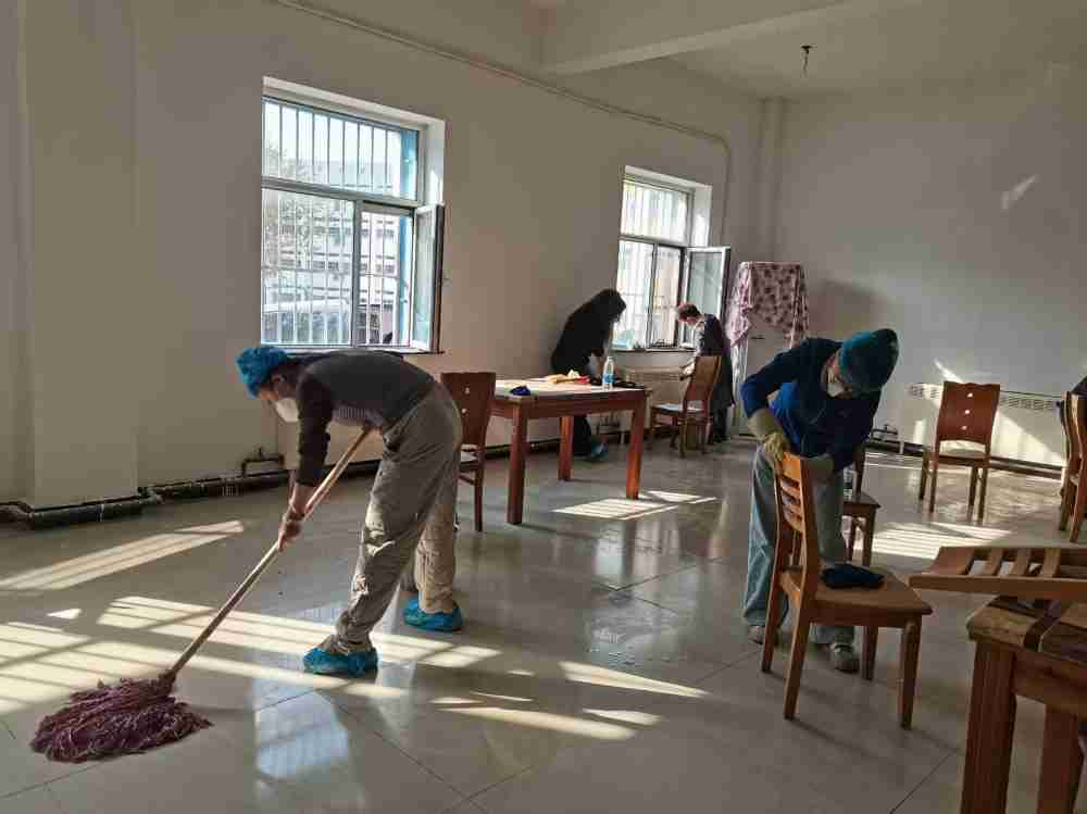 随后,大家化身为“红石榴”志愿者,立刻行动起来。他们有的拿起扫帚,认真地清扫着房间的每一个角落,不放过一丝灰尘,如同勤劳的小蜜蜂,为老人打造一个干净整洁的家园;有的擦拭着家具,让原本有些陈旧的物件重新焕发出光彩;有的则整理着杂乱的物品,将房间收拾得井井有条;志愿者们的身影在房间里穿梭忙碌,他们辛勤的汗水不仅让整个家变得温馨而舒适,也滋润着老人的心田。