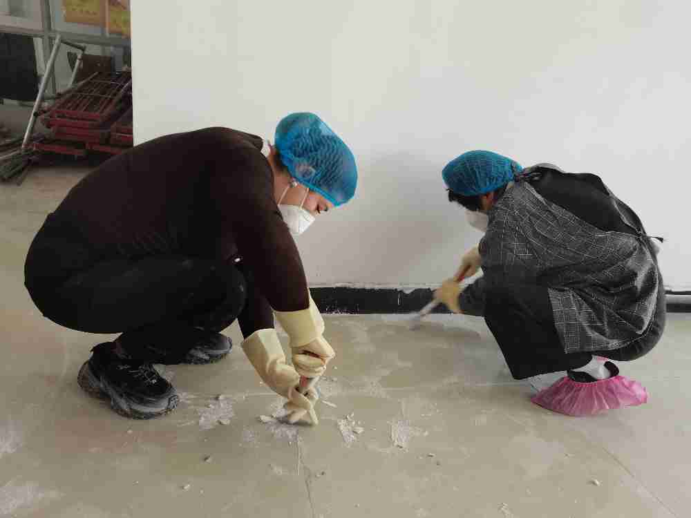 下午7点,大家再次集合处理地面收尾,有人拿小铲子蹲地铲除腻子碎屑,有人蘸清洁剂反复拖洗污渍,还有人干脆趴在地上,借着灯光检查残留的乳胶漆痕迹,逐一擦拭干净。待地面清理完毕,大家又合力将桌椅归位摆放,横竖对齐、间距均匀,整个空间瞬间整洁有序。最终食堂地面光洁如镜,新墙与齐整桌椅相映,彻底焕发出清爽生机。6个多小时里,大家汗湿衣衫、手沾油污却无一人叫苦,只为让食堂早日以崭新面貌服务职工。