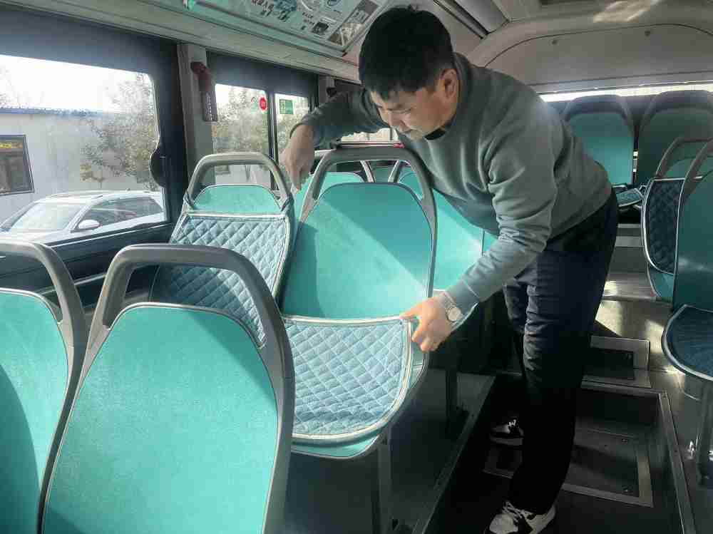 “车厢就是我们的‘第二个家’,把家收拾干净,乘客坐着舒服,我们开着也自豪!给自己和乘客一个好心情。”304路驾驶员穆合塔尔在等待发车间隙,仔细地将车厢地板擦拭完,还对扶手进行清洁。