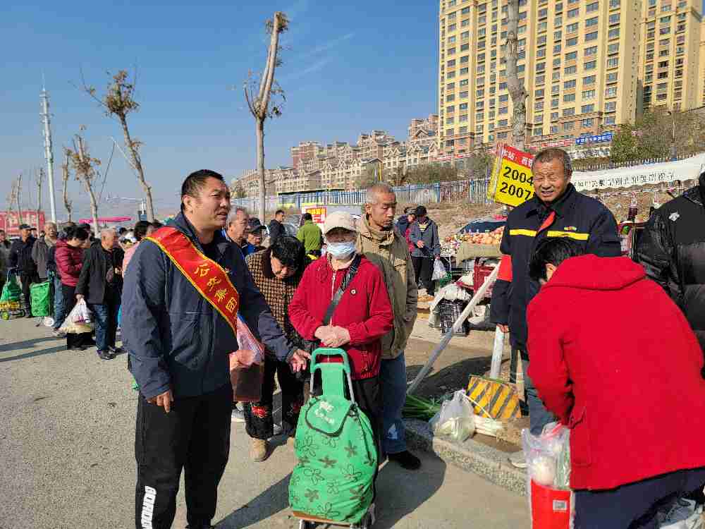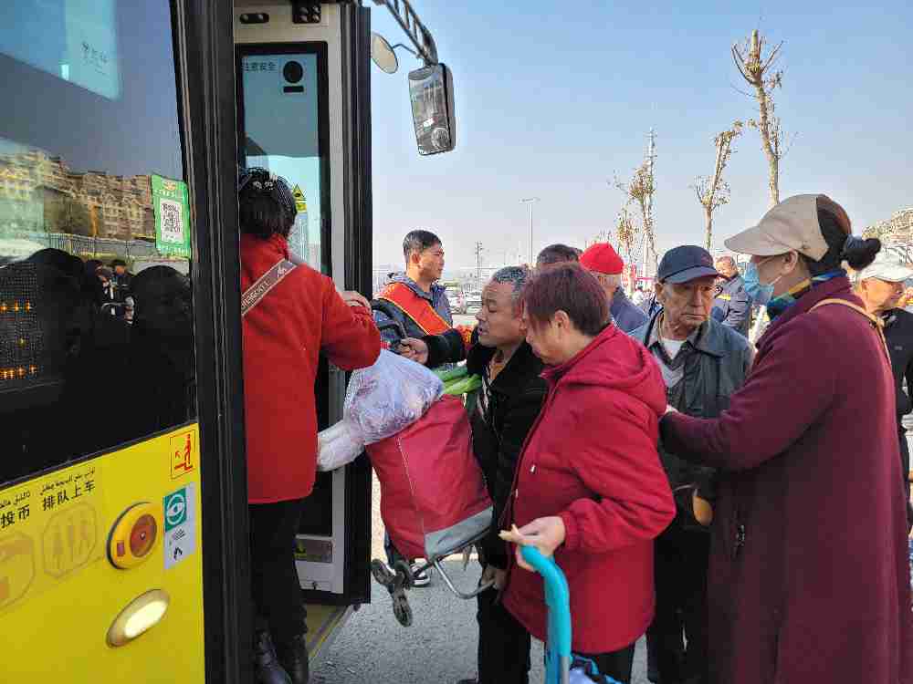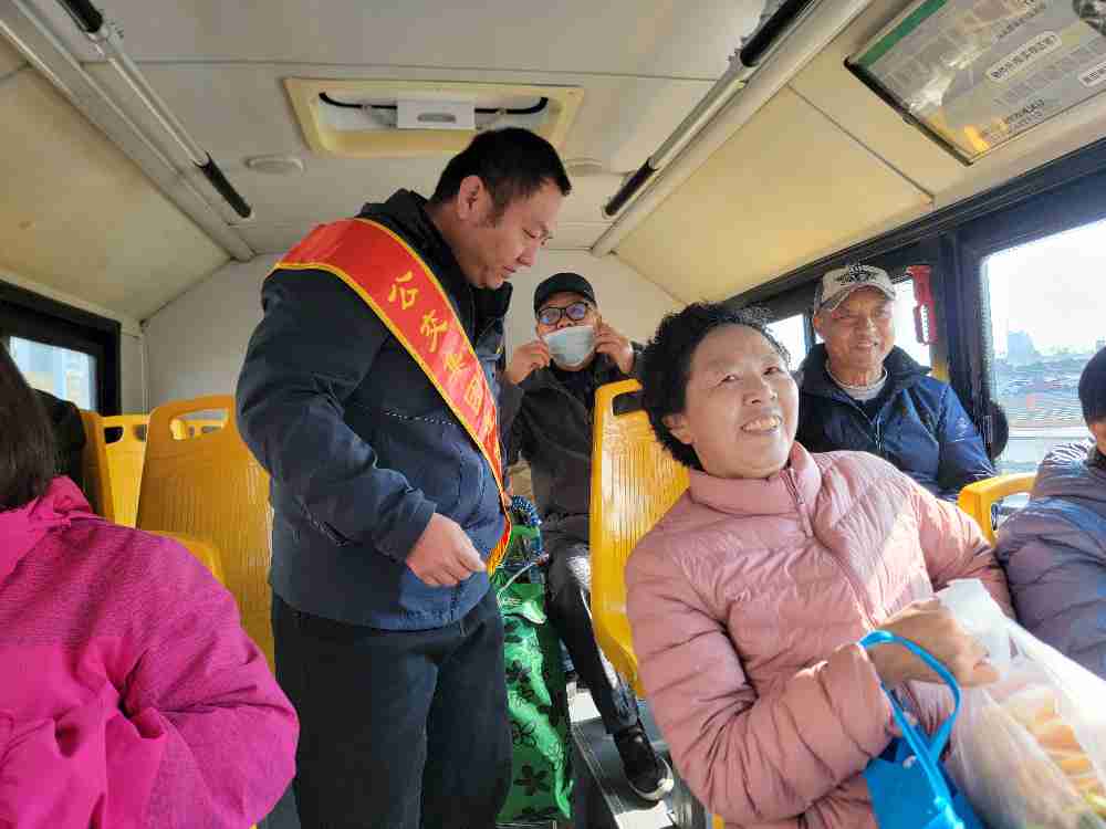 经营四部32车队帮扶人员的出现,彻底解决了这个难题。活动当天,他们分组行动:一组主动搀扶前来赶集的老人,全程陪同穿梭于摊位之间,耐心询问需求;二组协助老人挑选新鲜蔬果,提醒老人防范低价陷阱;三组在人流密集区域疏导交通,为老人开辟安全通道,同时帮助提拎重物,护送行动不便的老人安全上车。