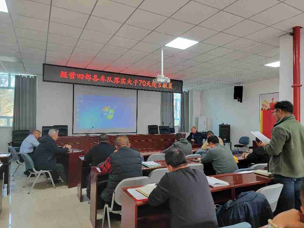 当前正值2025年收官与2026年开局的关键交汇期,为确保全面完成年度目标任务,系统夯实和提升新一年安全生产、运营服务基础,经营四部全体干部职工“大干70天”,以“时不我待、实干为要”的劲头,聚焦安全生产、运营服务两大核心领域攻坚突破,为集团公司高质量发展蓄能蓄力。