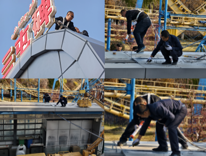 作业现场,班子成员与职工、青年志愿者们分工明确、默契配合。有的手持工具清理漏水点周边杂物、铲除老化防水层,有的细致搅拌防水涂料,有的攀爬至站台顶部精准涂刷防水胶条。大家不顾高空作业的不便与防水胶的刺鼻气味,弯腰俯身、挥汗如雨,从清晨微露到暮色降临,始终坚守在作业一线。清洗站台表面留下的污渍沾满衣裤,防水胶溅染了双手,但没有人叫苦叫累,现场一派热火朝天的实干景象。