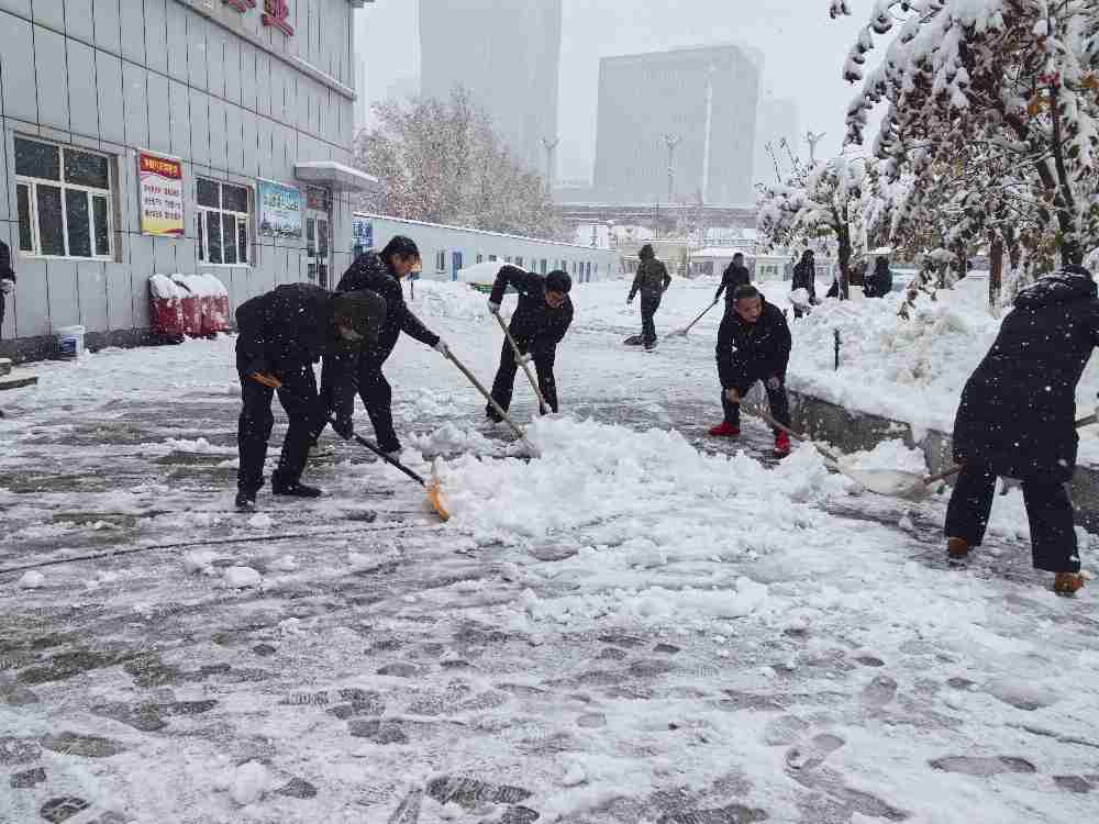 2025年11月5日至6日,乌鲁木齐突降罕见大雪,气温骤降至零度以下。一夜风雪过后,维修中心(超越公司)车间大门、钢瓶拆卸、小车维修等关键作业区深陷银装包裹之中。场区路面上积雪与雨水交织成泥泞的“泥汤儿”,既给职工通勤带来极大安全隐患,更直接威胁着车间日常生产的有序推进。维修中心(超越公司)第一时间吹响清雪攻坚号角,全体党员干部职工冲锋在前迅速投入战斗。