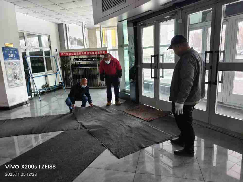“门帘一装,屋里明显暖和了!”刚回到煤化厂公交场站的902路驾驶员王师傅指着调度室安装的防风门帘称赞道。为应对降温天气,经营五部经营发展科日前组织人员赴各个站点,为办公楼、调度室等出入口加装厚实门帘,同时对门窗缝隙进行密封处理,有效防止热量流失。此外,在场站楼道内均铺设了防滑地毯,确保职工雪天出行安全。