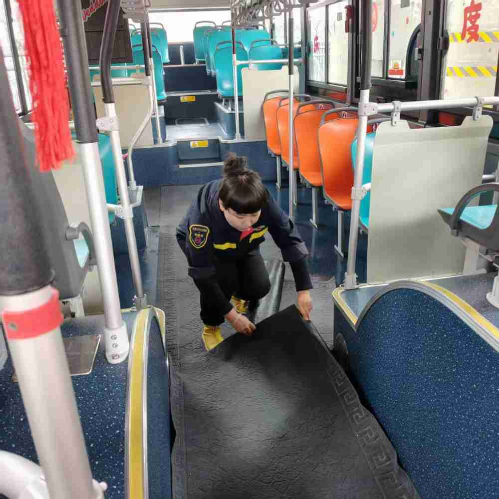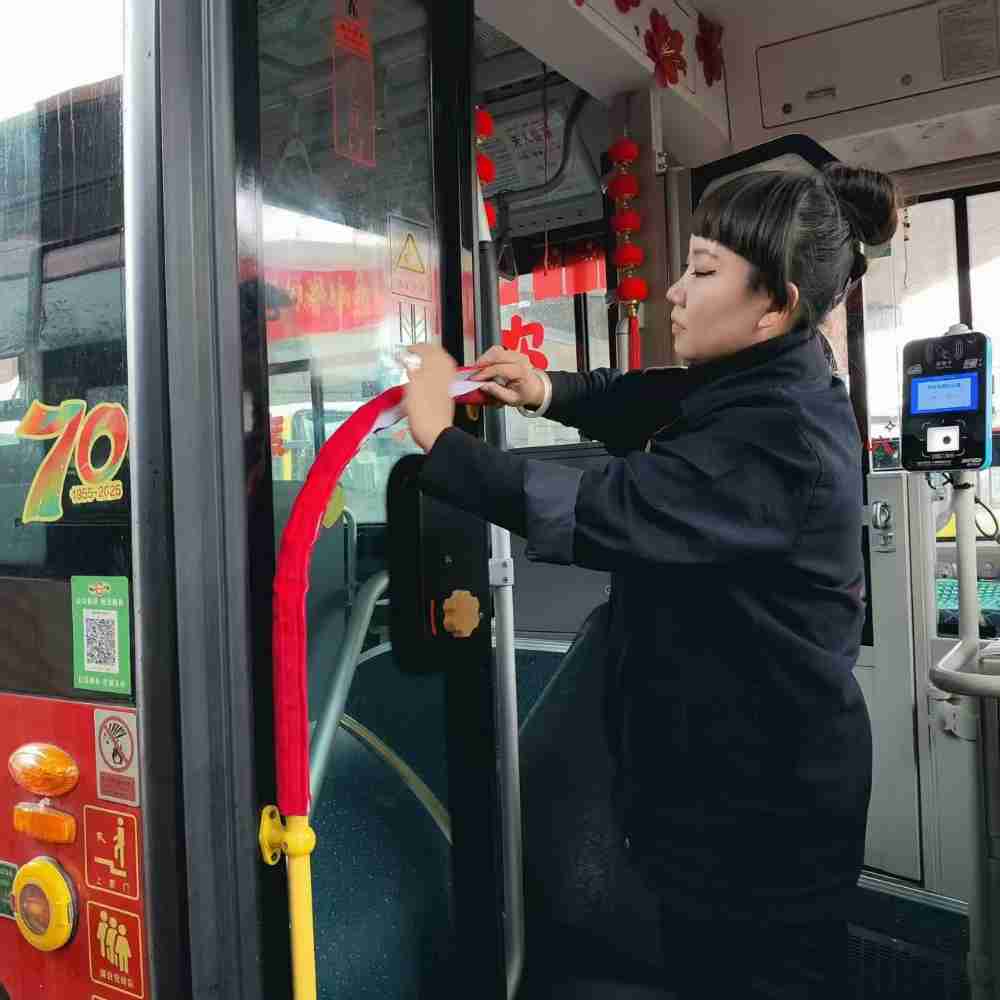 其中,305路0555号车驾驶员白丽黎的贴心举动格外动人。她结合天气预报预判,提前自掏腰包选购了比统一配备更厚实的防滑地毯和质感更柔软的把手护套。车辆出库前,她又反复检查地毯铺设是否平整、把手套是否套牢,力求为乘客营造更舒适的环境。从红山市场上车的许文华女士刚握住车门把手,便被这份温暖打动:“今天外面下着大雪,还刮着大风,本来以为上车会很冷,没想到车厢里这么暖和,地上铺了地毯,把手也不冰手,实在太暖心了!”