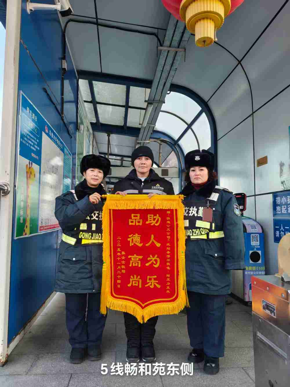 快速公交5号线畅和园东侧站台上演了一幕暖心场景。受冬季低温影响,站台地面出现湿滑情况,一名候车乘客突发不适晕倒。正在现场执勤的站务人员努尔孜也·阿不力克木发现后,立即启动应急处置流程,迅速上前查看乘客状态,小心守护避免其二次摔伤,随后及时递上温水与保暖物品,细心安抚乘客情绪。待乘客意识逐渐恢复、身体状态平稳后,她又搀扶着乘客避开湿滑区域,安全送至站台外,并协助联系到乘客家属,全程处置规范、动作轻柔、关怀备至。