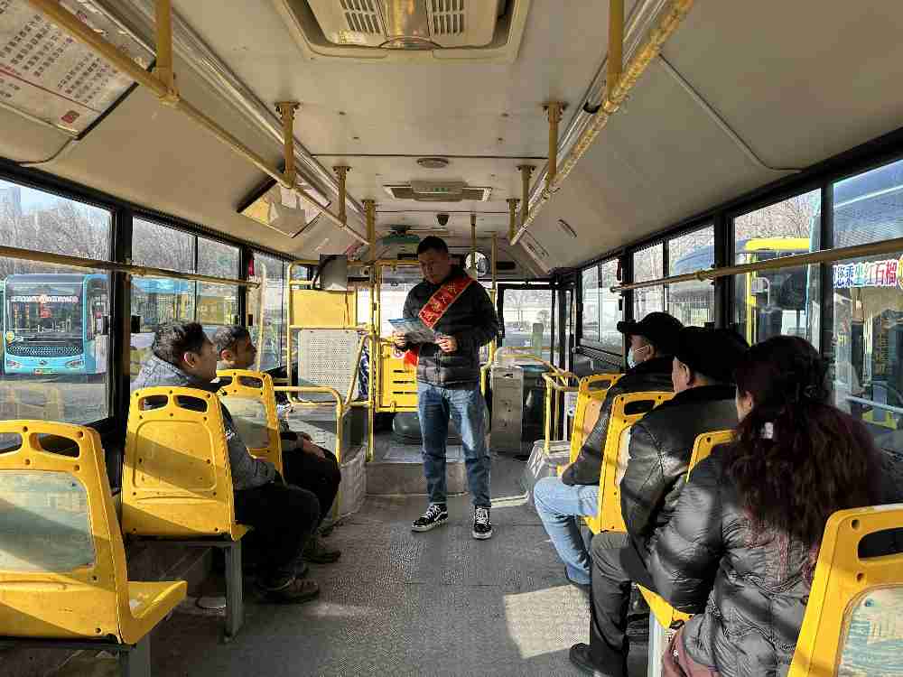 与此同时,三车队管理人员也在客流较大的站点设立宣传岗,向候车乘客普及安全行车注意事项。工作人员结合冬季出行特点,提醒乘客排队乘车、不携带危险品上车,向老年乘客讲解乘车安全常识,倡导大家文明出行、共同维护良好的乘车环境。