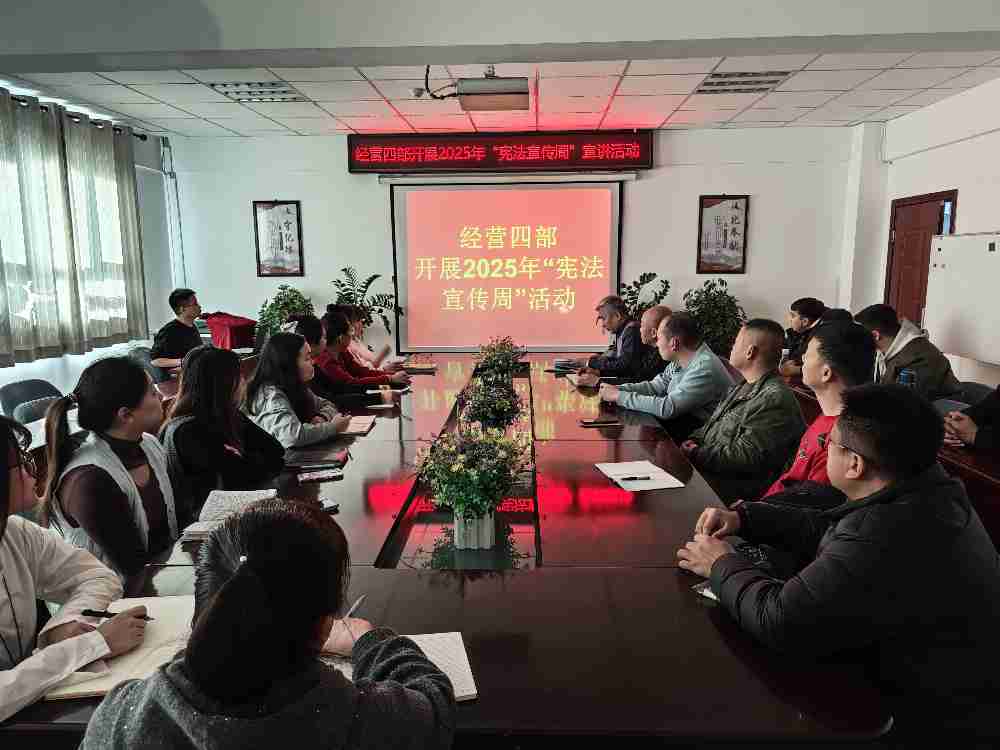 经营四部组织机关、车队管理干部进行宪法专题学习会,党支部书记刘爱军重点讲解了《中华人民共和国宪法》、习近平法治思想重要论述,结合公交行业安全生产、运营服务、劳动用工等实际案例,解读宪法与工作生活的密切联系,引导职工深刻认识宪法的重大意义和实践要求。在办公区域、公交场站张贴宪法宣传海报,悬挂宣传横幅,设置宣传展板,营造浓厚宣传氛围。