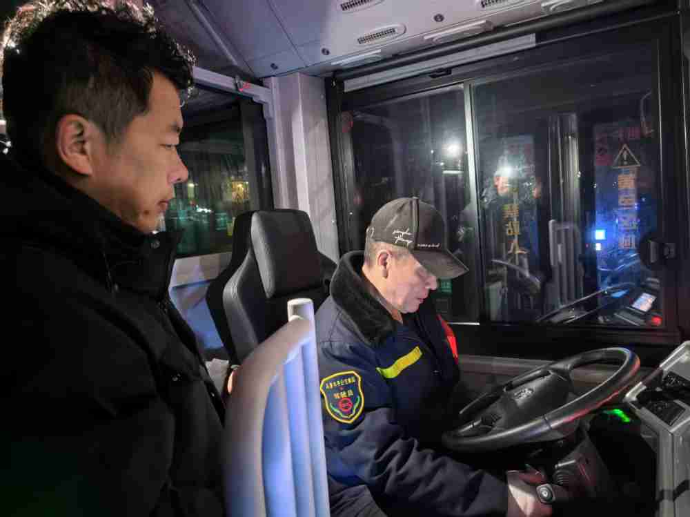 尽管夜间气温骤降,大家仍在各站点严格遵循“逐车排查、逐件检测、不留隐患”原则,工具碰撞声、设备测试声交织成忙碌的乐章。他们通过专业测试判断暖气系统运行状态,逐一核查接口密封性与管路通畅度,按规范捆扎线束,确保线路布局合理、连接牢固。“作为‘五个好’党支部,我们就要发挥战斗堡垒作用,党员更要冲锋在前!”书记赵斌的话语掷地有声,“想到乘客能在寒风中坐上暖融融的公交车,再苦再累都值得。”双手沾满油污,大家却始终坚守岗位,用精湛技术与务实作风守护市民出行温暖。