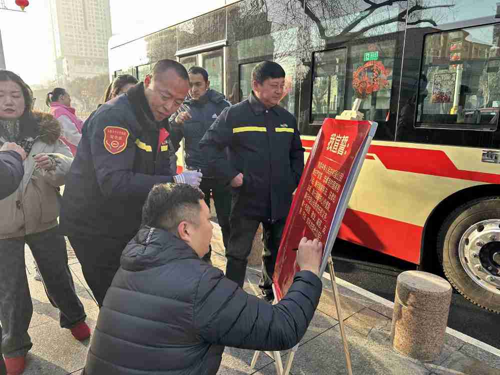 车厢普法流动化 ,法治氛围入人心。2路公交车打造成“宪法宣传车厢”,车内配备《宪法知识读本》《公交出行法律指南》等资料,化身“流动法治课堂”。乘客张红表示,乘车间隙就能学习宪法知识,这种宣传方式便捷又实用,不少乘客还在车厢内交流学法心得、拍摄宣传资料,让法治春风随公交线路浸润人心。宣誓签字表决心 ,筑牢法治信仰根基。在八楼站宪法宣誓台前,后勤服务中心职工与公交驾驶员庄严宣誓,以铿锵誓言表达尊法守宪的决心。宣誓后,职工与乘客纷纷在宣传海报上签字,公交驾驶员表态将在工作中兼任宪法宣传员,短短一上午,60余个签名成为活动现场的法治风景线。