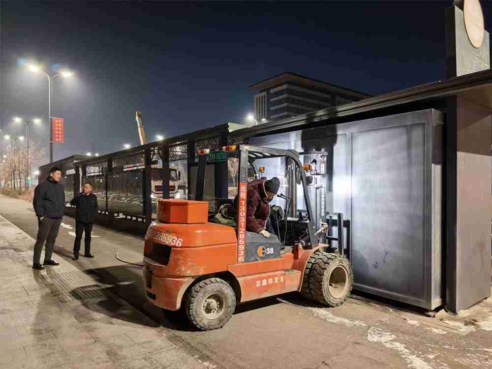 公司严格遵循“友好融入站台环境、合理匹配功能需求”原则,优先选择客流量大、服务配套待完善的站台作为闲置公交便民商亭安置点。12月3日晚,为避开日间公交运营高峰、减少对市民出行的影响,公司领导班子亲自带队,统筹协调运输车辆、施工人员及安全保障团队,将原河马泉公交车站两处闲置公交便民商亭,运送至西山104团中学车站、老君庙BRT站台。现场施工团队完成公交便民商亭的吊装定位、基础固定与安全检测,确保资产安置过程高效、安全,未对站台正常运营造成干扰。