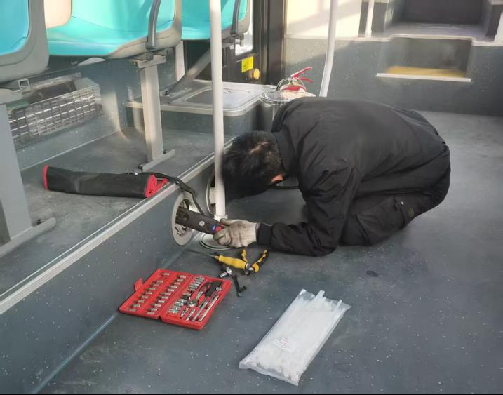 为不影响车辆正常营运,电工组赶赴各站点,顶着寒风投入工作。指尖冻得发红,他们仍仔细检查每处线束的捆扎规范度,认真检查水管接口并测试密封性;对暖风机、柴油加热器的运行情况逐一排查,并对老化的车厢密封条及时更换,用专业与坚守为市民筑牢冬日出行的“温暖防线”。