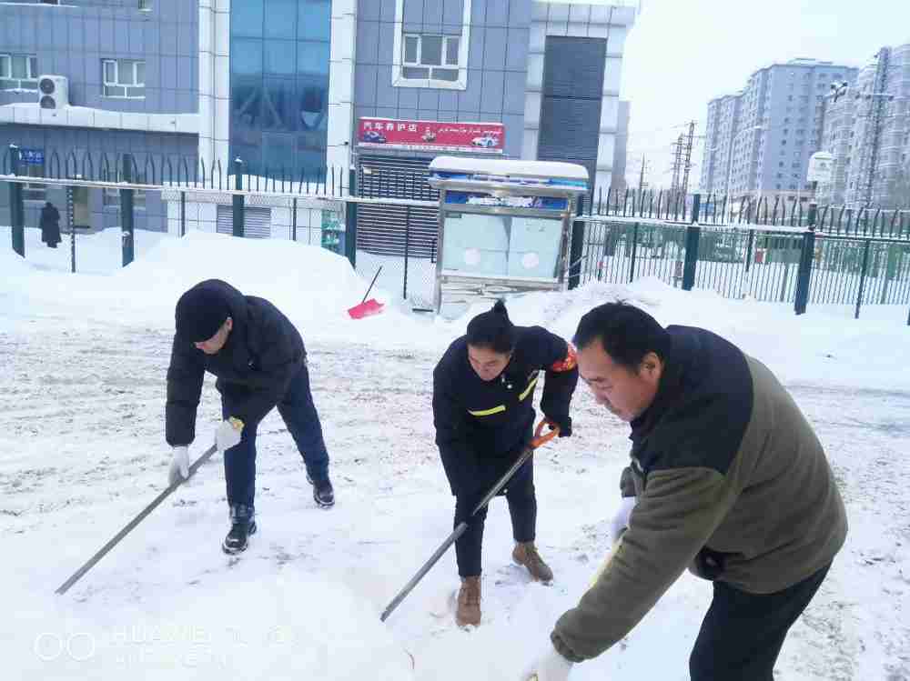 与此同时,全体干部职工提前到岗,由公司领导带领开展全员扫雪除冰行动。大家分工协作,重点清理场区出入口、车辆通道、驾驶员办事区域,铲除冰层、抛洒防滑物料,消除人员滑倒、车辆打滑隐患,为驾驶员办事和车辆补给营造安全有序的环境。