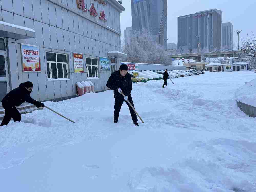 11日清晨7点,天刚蒙蒙亮,大雪依旧纷飞。经营三部的干部职工们早已顶风冒雪,奋战在各自的岗位上。
