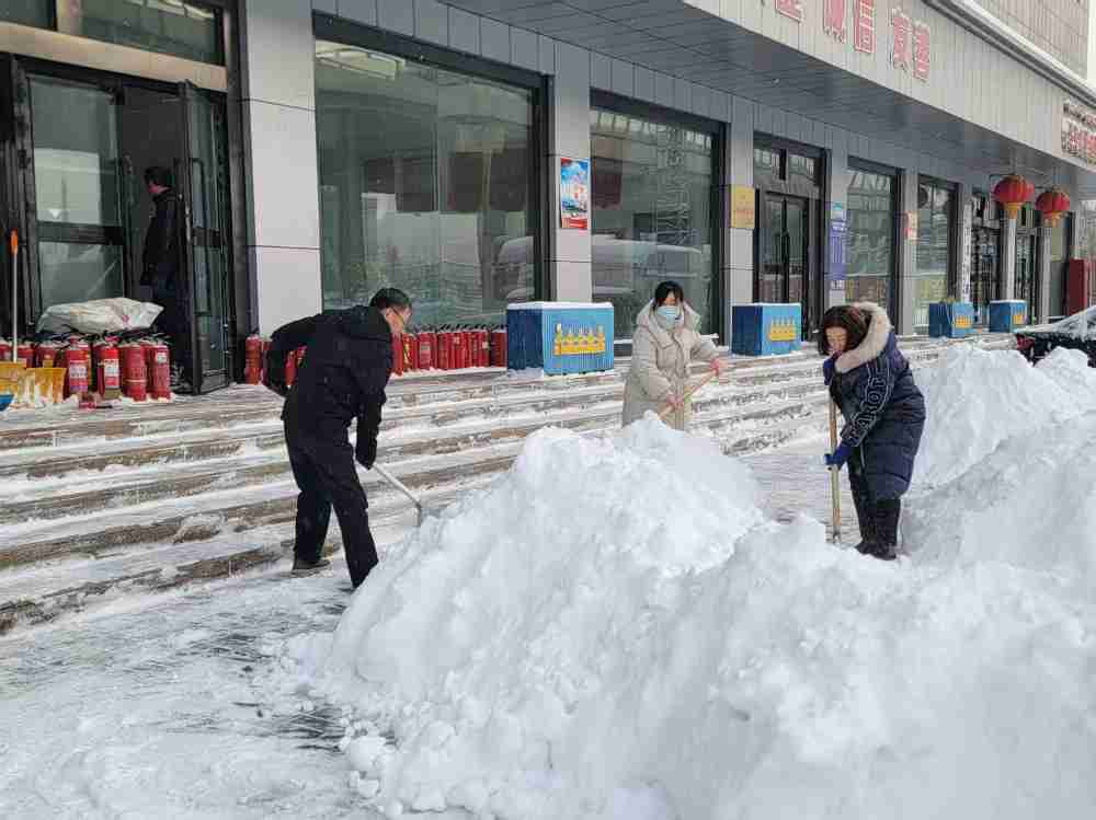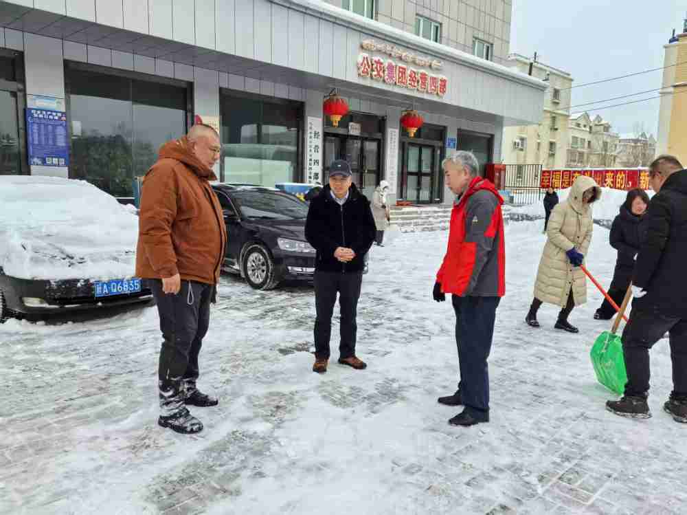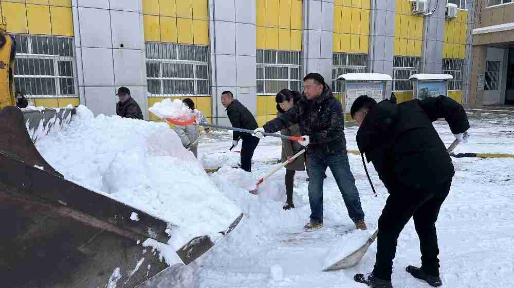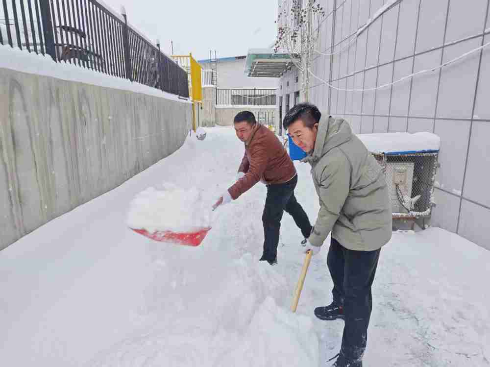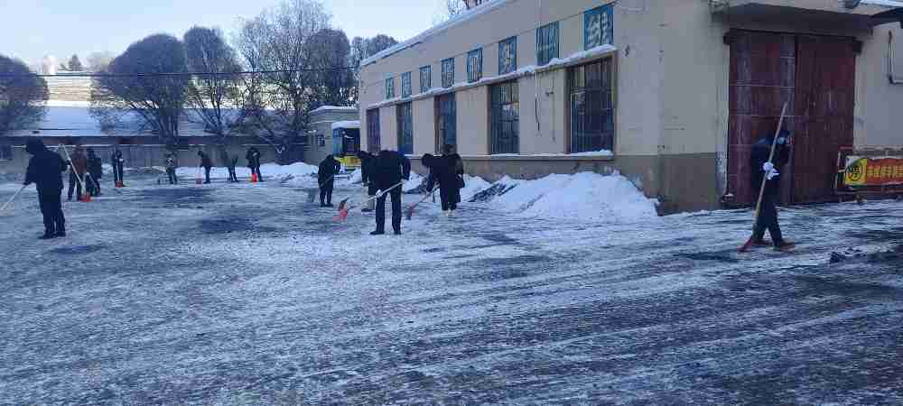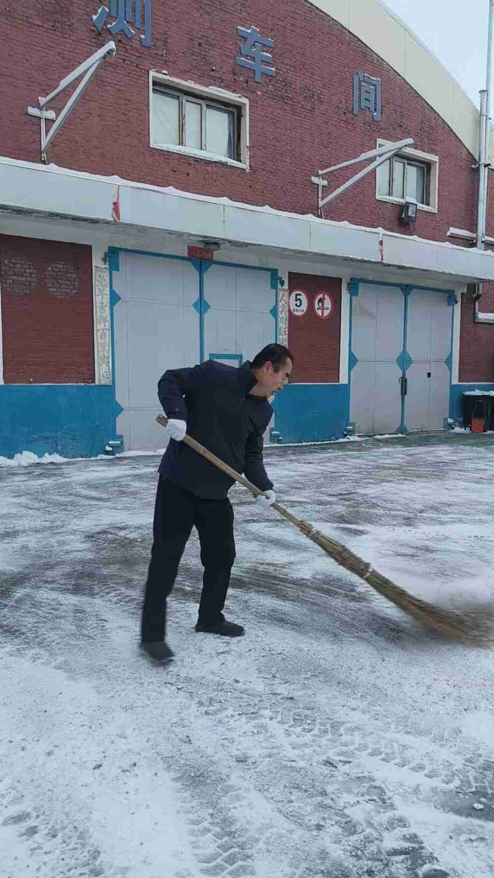 上午9:30,全体管理人员准时集结,车间工作人员在保障本职岗位安全的前提下,也积极响应,主动加入到扫雪队伍中。在公司党支部书记陈磊的带领与统筹下,大家不畏严寒,手持扫帚、铁锹等除雪工具,迅速投入到公司场区内车间门口及周边办公区域的清扫工作中。清扫现场,管理人员与一线职工并肩作战,齐心协力,配合默契。有的负责铲除顽固结冰,有的负责清扫覆盖积雪,有的负责将积雪集中清运。尽管天气寒冷,但大家热情高涨,劳动场面井然有序又充满干劲。