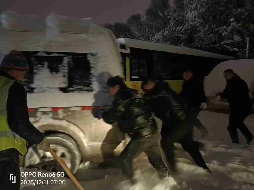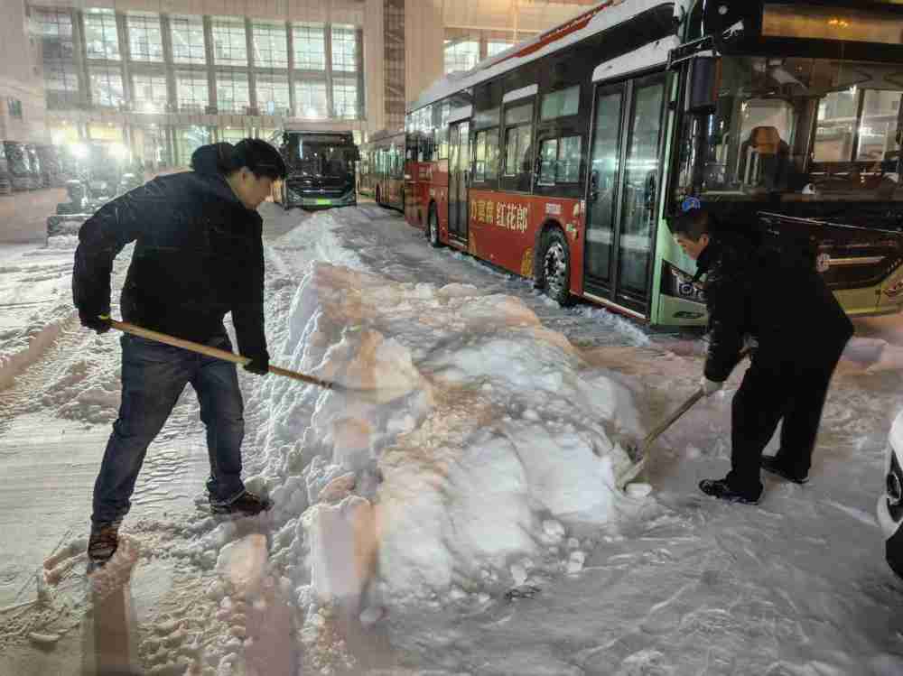 12月10日,乌鲁木齐遭遇强降雪天气,持续降雪导致场站、道路积雪结冰,极度考验运营安全与市民出行畅通。经营六部闻雪而动、迅速响应,第一时间启动冰雪天应急预案,部领导班子带领全体管理干部,连夜奋战在各场站,以“雪不停、人不歇”的担当,全力开展扫雪除冰、车辆保障工作,确保运营车辆正常上线,为市民出行筑牢安全防线。