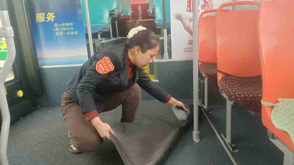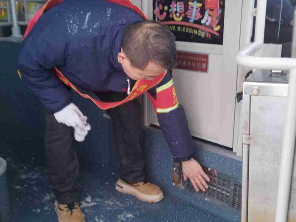 在煤化厂公交站台,志愿者们手持除雪工具,清扫站台积雪,保障乘客候车安全。公交车辆进站时都放缓车速,驾驶员时刻通过后视镜留意是否有奔跑赶来的乘客;遇到老人乘车,更是主动起身帮扶,提醒“路面湿滑,慢点上下车”。车厢内,暖心坐垫铺就座椅,台阶处也加装了防滑垫,细微之处尽显温情。“座位暖和,踩在垫子上也稳稳的,太贴心了!”带着孙子出行的张奶奶说。
