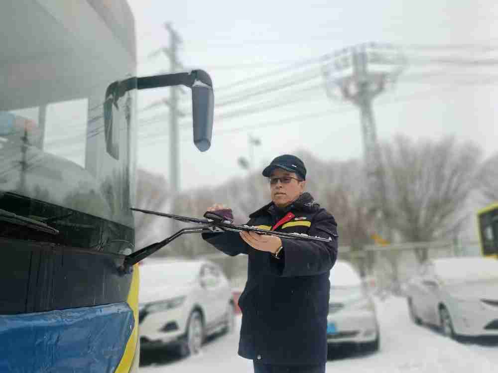 在这场与风雪的较量中,每一位公交驾驶员都是移动的“暖房”守护者。天还未亮,他们已顶风冒雪,提前一个多小时到达场站。在零下十几度的严寒中,投入到紧张的准备工作中:先是仔细检查车辆的制动、灯光、轮胎等关键设备,确保万无一失;接着,他们手持雪刷,奋力清除车身和车窗上厚厚的积雪,随后预热车辆,打开暖风,让发动机的热量先为冰冷的车厢注入暖流。