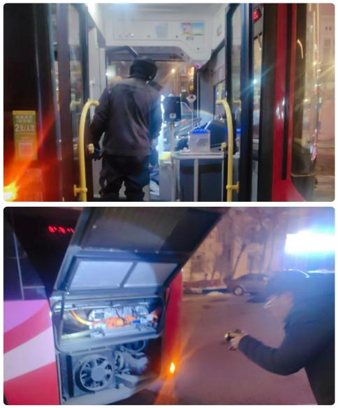 新车投入运营初期,驾驶员反馈部分车辆存在漏防冻液问题,这一情况引起车间高度重视。为快速排查隐患,车间第一时间组建技术排查小组,采用“逐车检测”的工作方案。排查过程中,技术人员秉持严谨细致的工作态度,对每一辆新车的冷却系统展开全面“体检”,仔细检查进回水管路是否存在渗漏、线束捆扎是否规范牢固、锅炉点火系统是否正常工作,同时检查锅炉周边是否有遮挡物。针对排查发现的问题,排查小组当即维修调试,确保每一辆车都达到安全运营标准。