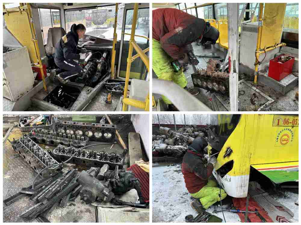 为深入拓展“公交+对外维修”业务蓝图,充分发挥党建引领生产经营的核心作用,2025年12月13日,维修中心(超越公司)二车间党员突击队主动承接阜康公交集团12辆新能源公交车电池更换任务。在党员刘玉的带领下,4名维修骨干放弃周末休息、加班加点,在严寒环境与复杂作业条件下攻坚克难,以实际行动践行“一个党员就是一面旗帜”的责任担当。