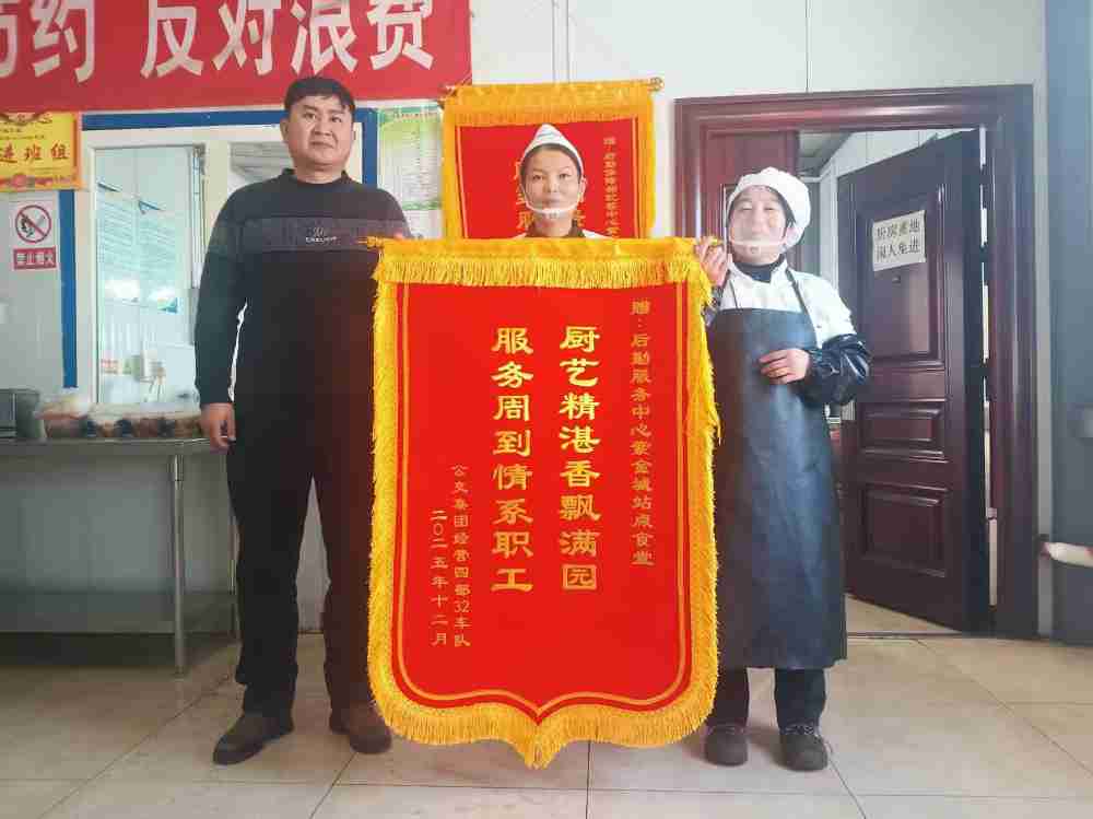 岁末收官,硕果盈枝。2025年,后勤服务中心职工食堂锚定“安全为基、服务为本”核心目标,深耕餐饮保障主责主业,以匠心雕琢餐食品质,用真心回应职工期盼,赢得广大干部职工的一致好评与高度认可。年末岁尾,六道湾、八道湾、儿童村、紫金城等多个站点食堂,陆续迎来职工代表登门致谢,一面面绣着“饭菜飘香暖人心,服务周到获赞誉”“饭菜可口安全放心,营养搭配科学合理”的鲜红锦旗,不仅是对食堂工作的最高褒奖,更是后勤服务温度与品质的生动见证。