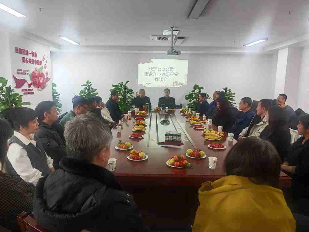 12月31日上午,快速公交公司“家企连心 共筑平安”驾驶员及家属座谈会在西山停保场三楼会议室举行。公司领导、职能部门负责人、各车队队长和书记与二十余位一线公交驾驶员及家属代表围坐交流,将企业监管、岗位责任与家庭守护相连,凝聚共筑公交平安防线的合力。