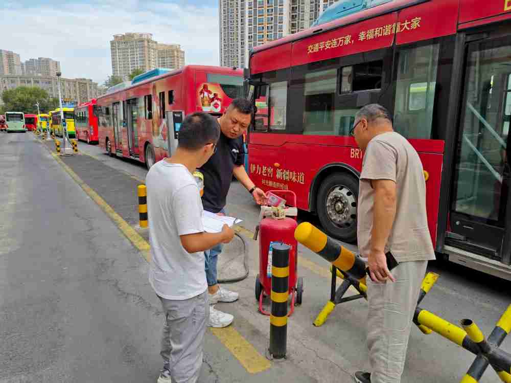 “发动机舱温度过高容易引发线路老化,轮胎气压也要重点关注,高温下胎压高异常很危险!”在红一电公交场站,技术质量管理科科长李书军一边仔细查看车辆,一边向随行的检查人员叮嘱着检查要点。此次检查涵盖了车辆发动机、刹车系统、轮胎磨损、灯光等关键部位及安全硾、灭火器等安全设备,确保每一辆上路的车辆都处于最佳状态。
