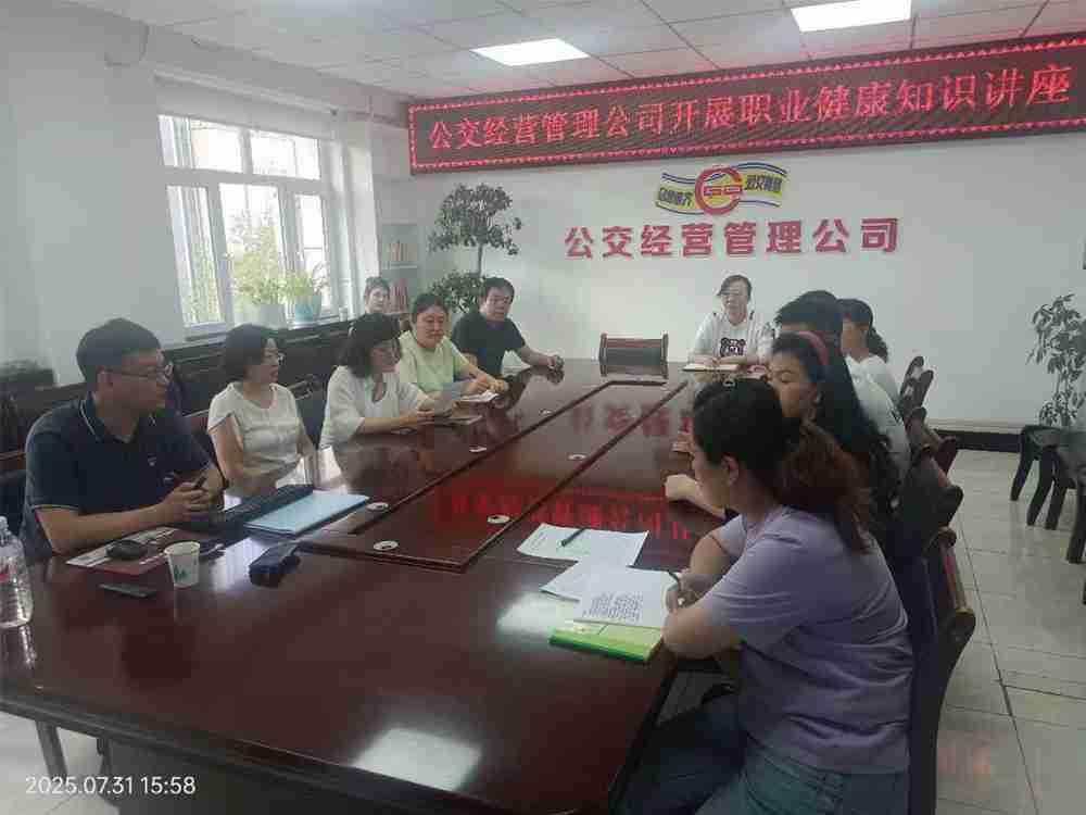 为进一步加强职工职业健康防护意识,普及职业健康知识。7月31日公交集团经营管理公司组织开展职业健康专题培训活动,各部室职工共计11人参加。