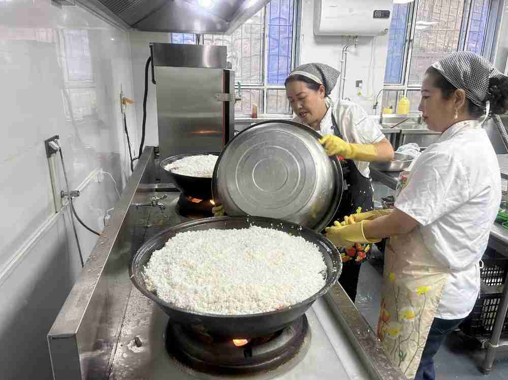 后勤服务中心在落实专项行动中,秉持“精准化、规范化、品质化”原则,聚焦细节管理,针对抓饭制作推出“三定”机制:定用量,对大米、肉、胡萝卜、洋葱等各类食材的配比进行精确量化,确保每一份抓饭的口感与风味稳定;定时间,严格规范浸泡大米、煸炒食材、焖煮成型等各环节的操作时长,保障烹饪节奏科学合理;定工序,从食材预处理到成品出锅的标准化流程,明确各步骤操作要点与抓饭品质要求,建立起明确的制作流程 。从食材处理到每一步操作时长、顺序,均做明确规范,助力食堂厨师精准制作,让抓饭品质稳定,麦香与食材风味融合,为“美味食堂”建设夯实基础。