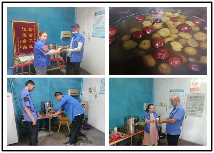 “张师傅,这是刚晾好的凉茶,里面加了红枣、杏干和冰块,清凉解暑,赶快来一杯……”说话间,艾衣先木·古丽将凉茶递到了张宏武师傅手中。“天一热就盼着你这口凉茶,比买的饮料喝着舒坦,最主要是我们身边人亲自熬煮的,是我们这个大家庭团结友爱的见证。”刚跑完早高峰的杨庆师傅端起凉茶一饮而尽,抹了把额头的汗水意犹未尽地说道。“这杏干是库车的吧?味儿真地道!”“我已经喝了三年漂亮古丽煮的凉茶,很是怀念这种味道。”师傅们你一言我一语,欢声笑语中仿佛高温带来的燥热在这一刻已被驱散殆尽。