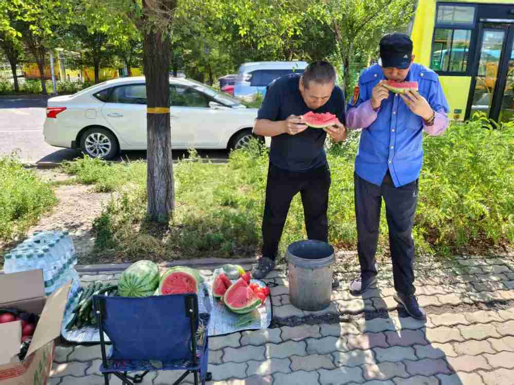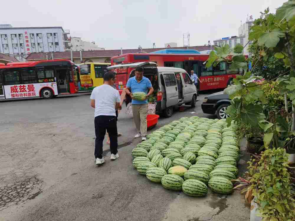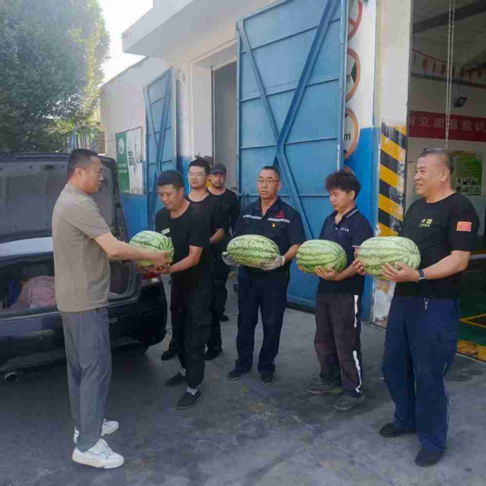 公司提前采购了一批新鲜优质的西瓜。由各车队管理人员分发给在岗职工,确保大家感受到公司的关爱。管理干部将西瓜送到驾驶员手中,提醒大家注意防暑降温,合理安排休息,确保行车安全。