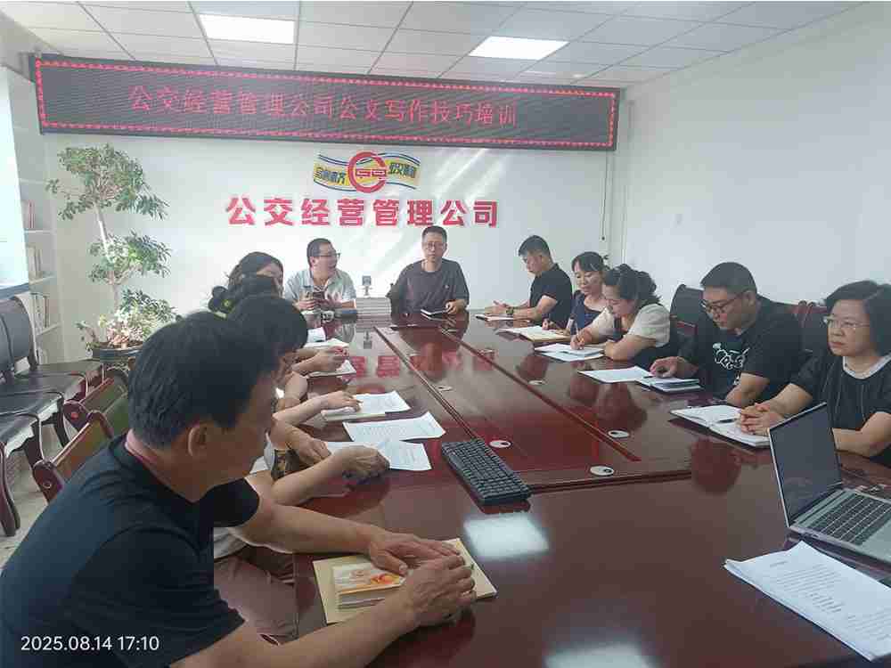 为进一步提升公司全员公文写作水平,保障房屋租赁、资产盘活、灭火器销售等各项业务实现规范高效的文字沟通,8月14日下午,公交集团经营管理公司党支部副书记、总经理田苗在公司四楼会议室主持开展公文写作技巧培训,公司全体人员参会。