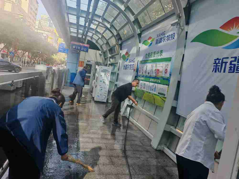 自2025年8月31日起,场站(站务)服务科便制定了详细的清洁计划,明确了各站台的清洁标准和责任人。全体站务人员主动放弃休息时间,全身心投入到清洁工作中。他们手持清洁工具,对站台的地面、座椅、暖房、安全门、广告牌、垃圾桶等设施进行了全方位的清洁。针对地面上的顽固污渍和口香糖,站务人员采用专业清洁剂和钢丝刷,反复擦拭,直至彻底清除。对于站台的玻璃和广告牌,他们则使用干净的抹布和玻璃清洁剂,仔细擦拭,确保表面光洁如新。此外,站务人员还对站台的垃圾桶进行了彻底清理和消毒,更换了垃圾袋,确保垃圾不堆积、不外露。