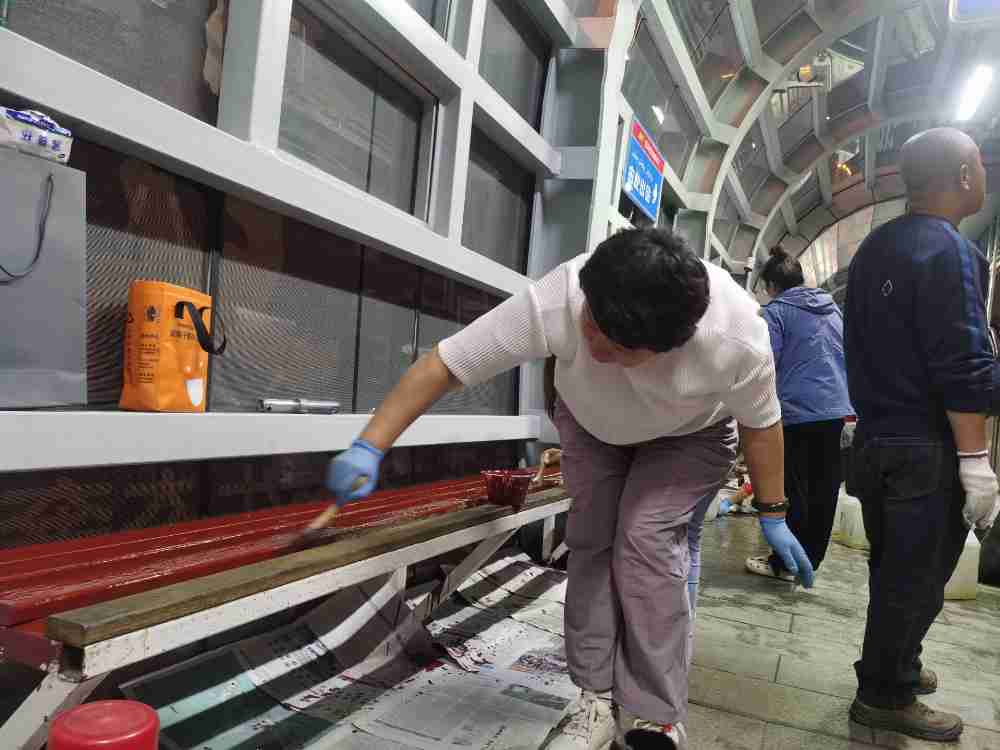 在站台钢柱刷漆环节,车辆维修服务中心人员祈居俊分享到:“钢柱刷漆要讲究细节,得先把锈迹彻底打磨干净,不然刷上去时间不久会漆面翻起脱落,刷漆要控制好量,不然会流挂,既影响美观,还容易开裂。”工作中大家根据钢管结构,彻底除锈打磨,再均匀涂刷环保漆,原本锈迹斑斑的钢管渐渐换上“新装”,不仅提升了美观度,更增强了结构安全性。