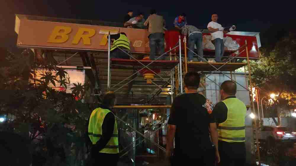 夜幕深沉,当大多数人已经沉浸在梦乡时,经营二部干部职工为喜迎新疆维吾尔自治区成立70周年及“国庆”节的到来,正有条不紊地对友好(北向南方向)BRT公交站台进行翻新和卫生清洁工作。灯光下,他们忙碌的身影成了夜色中一道别样的风景线。