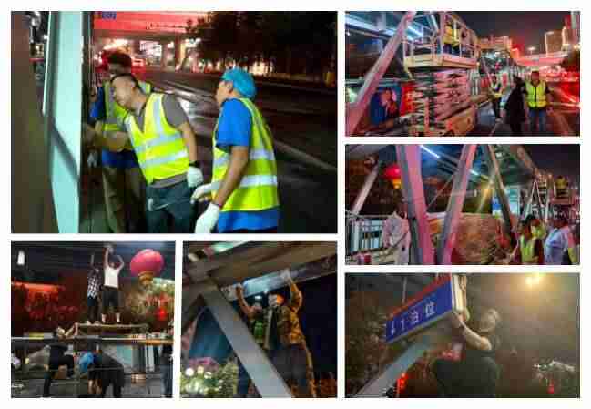 转眼到了正午,阳光愈发炽热,大家的额头上渗出了细密的汗珠,汗水顺着脸颊滑落,浸湿了衣领,却没人停下手中的活。“歇会儿喝口水吧!”后勤保障组送来的矿泉水递到手中,大家拧开瓶盖猛灌几口,又立刻转身投入工作。“现在正是赶进度的时候,早一点完成,站台就能早一点以新面貌迎接市民。”一位负责粉刷的经警科师傅一边擦汗一边说,手上的动作丝毫没有放慢。从烈日当空到夕阳西下,再到夜幕降临、华灯初上,八楼站台的灯光下,依然活跃着他们忙碌的身影。灯光映照着他们专注的脸庞,也照亮了一点点变新的站台——崭新的顶棚、干净的地面、透亮的站台玻璃,每一处细节都凝聚着大家的心血。