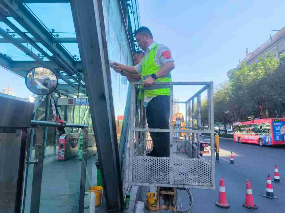 除了硬件翻新,深度清洁工作也同步展开。修理人员手持各种清洁工具,对站台的每一个角落进行了细致入微的清理。从地面的污渍到墙面的灰尘,从玻璃的擦拭到设备的除尘,不放过任何一个卫生死角。经过他们的努力,站台内外变得干净整洁,一尘不染,仿佛被重新“洗”过一般,让人眼前一亮。