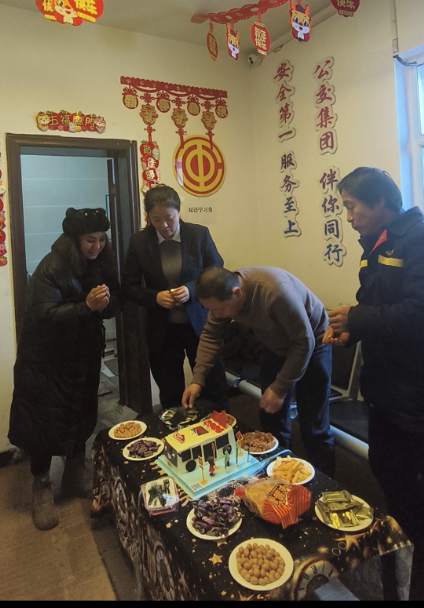 自加入公交队伍以来,艾斯玛·阿不力时刻感受着企业和车队的温暖关怀。在遇特殊情况时,车队管理人员妥善协调排班事宜,同事们在驾驶技巧、服务规范上与她互帮互学;遇到困难时,领导和同事们总会主动伸出援手,让她深深融入这个团结友爱的大家庭。这份沉甸甸的关怀,她始终铭记在心,因此在这辞旧迎新的美好时刻,艾斯玛·阿不力以定制专属蛋糕的暖心之举,传递着对企业和车队的感恩之情,也为节日增添了浓浓的暖意。大家围坐在一起,分享着香甜的蛋糕,畅谈着工作与生活的点滴,欢声笑语不断。