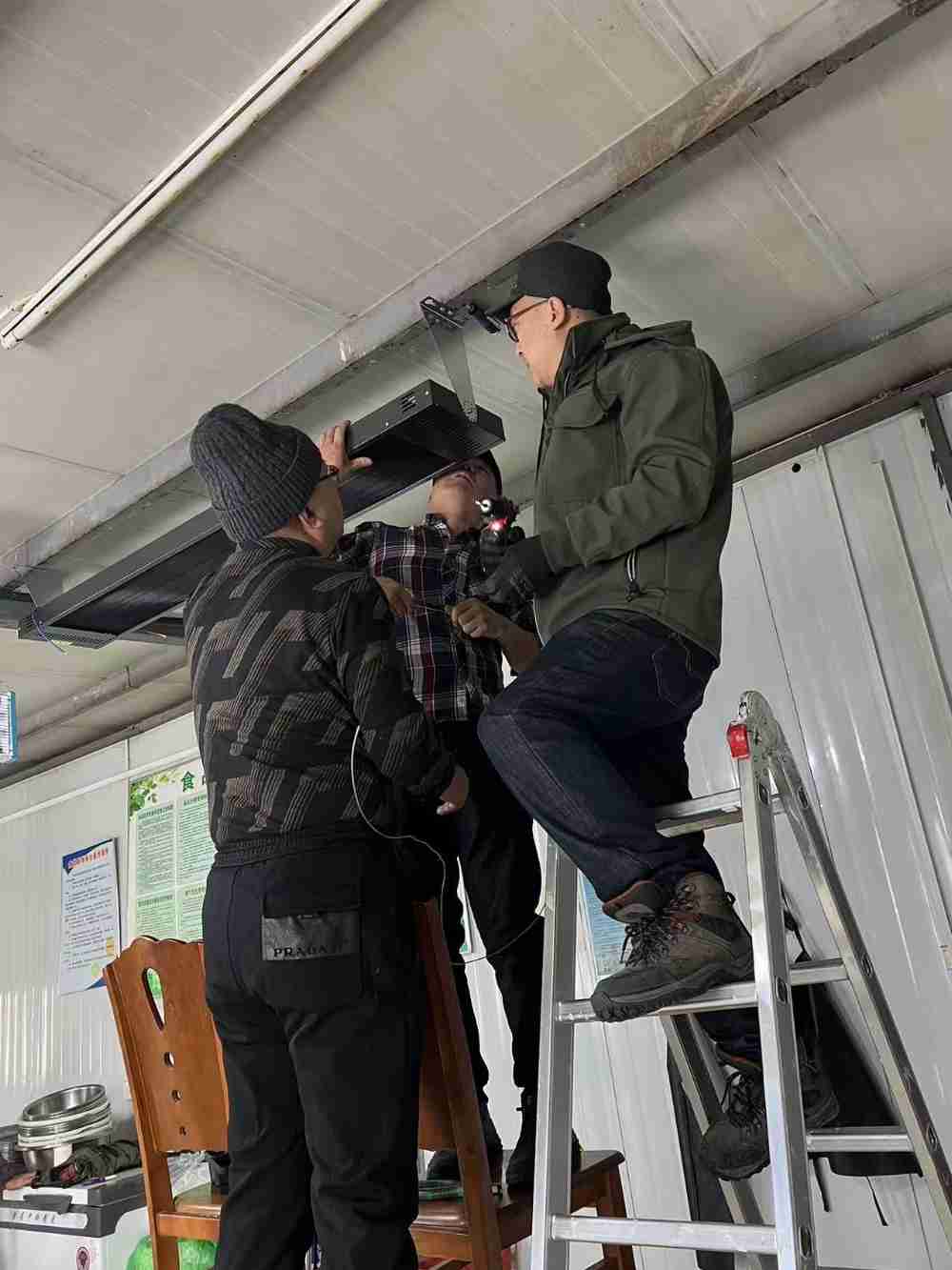 为尽快驱散后厨寒意、保障职工舒心履职,后勤服务中心迅速调整解决方案,多方协调优质资源、严格比价筛选供应商,最终敲定热幕机作为应急供暖设备。时值元旦假期,当大家都沉浸在辞旧迎新、阖家团圆的休闲时光里,中心的工作人员却主动放弃休假,毅然奔赴工作岗位。大家争分夺秒推进设备采购、运输、进场等前期工作,进场后又马不停蹄投入安装调试,从精准定位设备安装位置,到规范铺设管线线路,再到反复调试运行参数,每一个环节都严谨细致、一丝不苟。经过连续奋战,工作人员于元旦假期第三天顺利完成全部热幕机的安装调试工作,食堂后厨供暖恢复正常,融融暖意驱散了冬日的凛冽寒气,切实保障了后厨职工的工作舒适度。